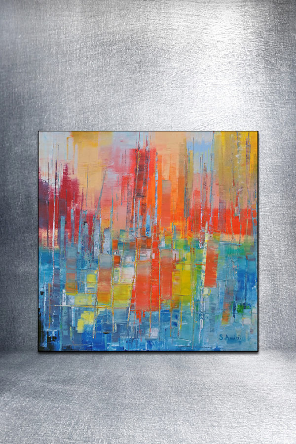 L’œuvre picturale de Sébastien Amieil est ainsi une abstraction construite où la couleur, par sa densité et son traitement physique, est élevée au rang de matière sculpturale.