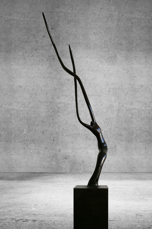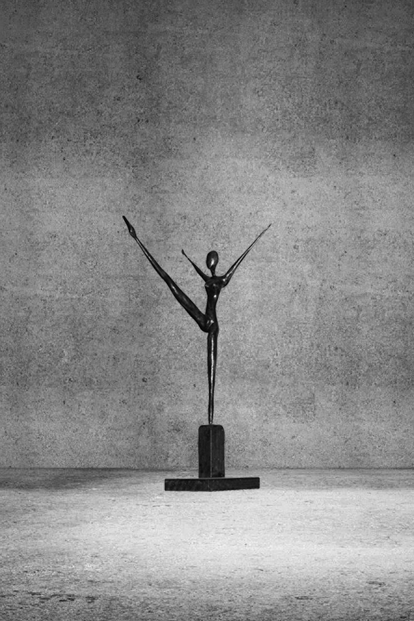 L’intention de l’artiste était de transcender la densité du bois afin de concevoir une forme résolument moderne, légère et épurée. Cette approche visait à donner vie à la matière, en capturant, par l’intensité du langage corporel, toute la grandeur et la grâce inhérentes à la figure archétypale de la danseuse étoile.